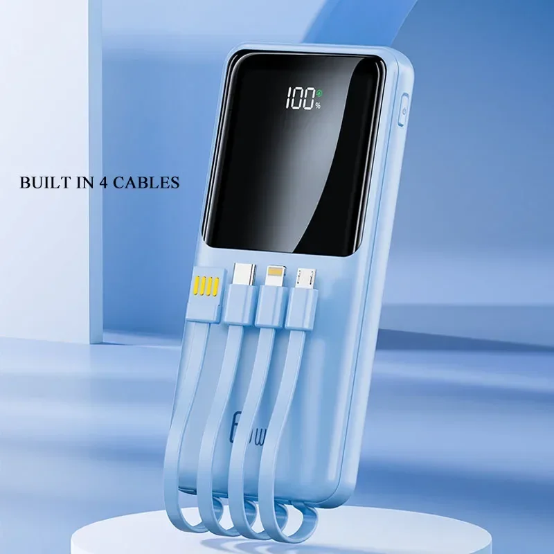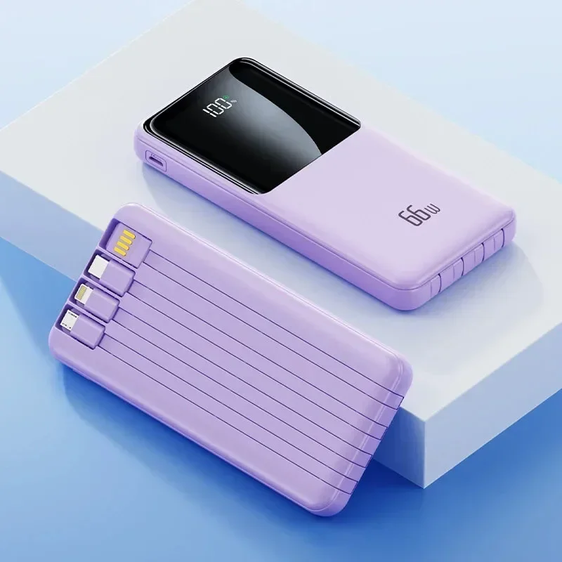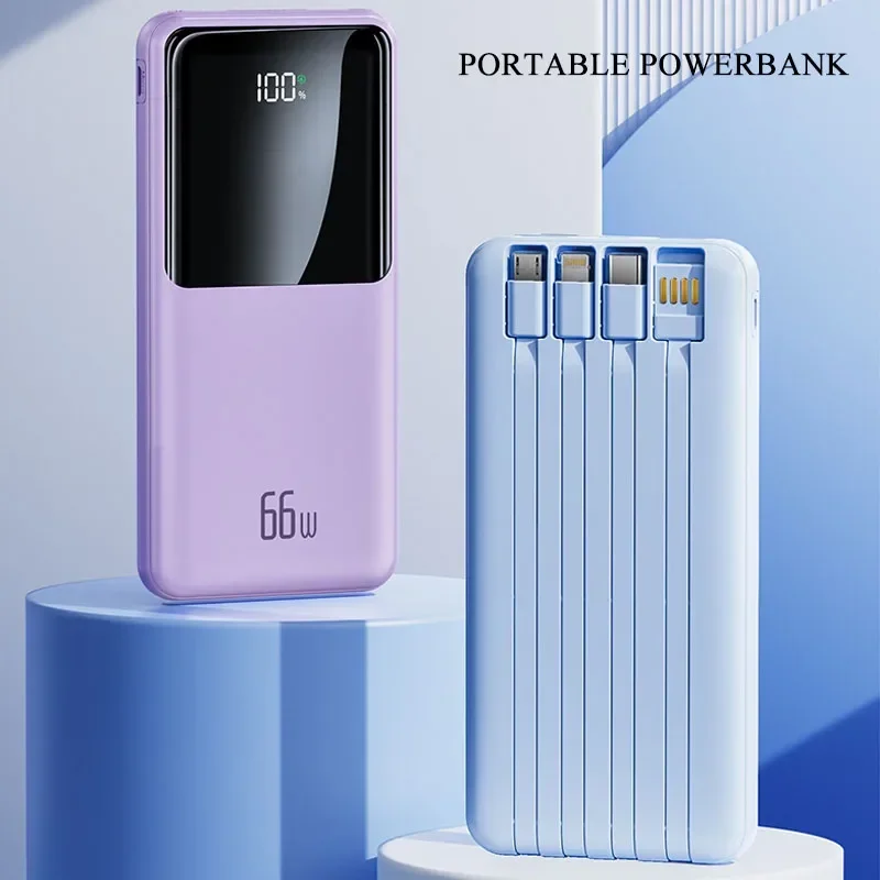 66W Power Bank 10000mAh Portable External Battery Charger Fast Charging for iPhone Xiaomi Samsung Huawei Powerbank With Cables